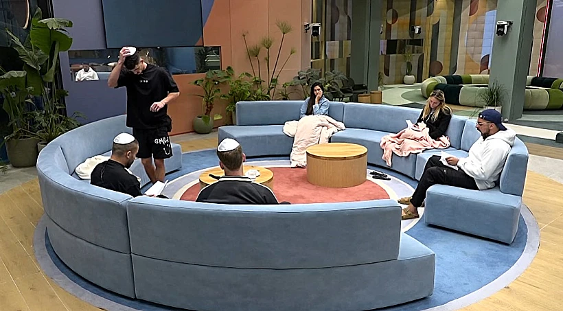 לפני שינה, הדיירים מתכנסים יחד בסלון ואור מוביל את התפילה.