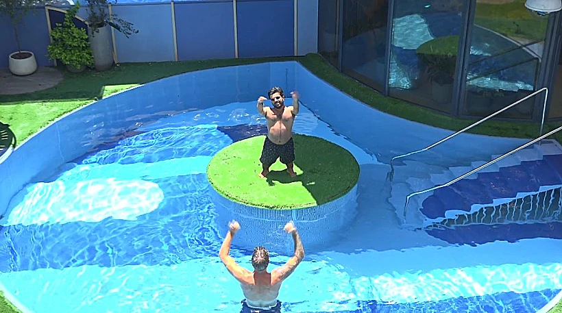 יוסי וחיים נהנים ומשתטים בבריכה