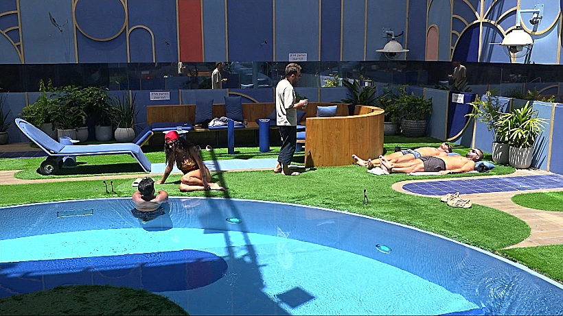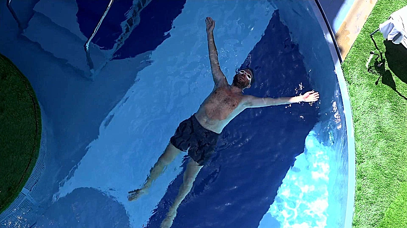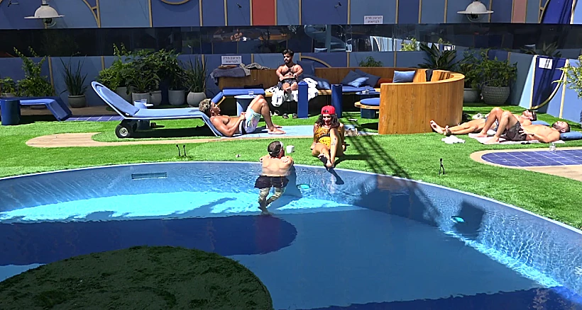 הדיירים מבלים בבריכה, בן מדגים טכניקות שחייה שונות וחיים מספר לפרידה שהוא רוצה לפתוח חוף משלו - עם דק במקום חול: "אני לא סובל חול". יהב: "אבל אנשים אוהבים חול", חיים: "שילכו".