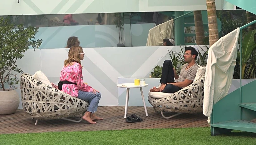 תמיר ושרית משוחחים בפינת העישון. תמיר מניח שאורן הוא הראשון שיעלה לגמר ושרית חושבת שזה יהיה תמיר.