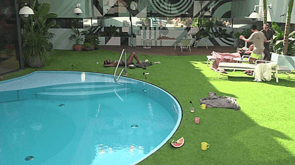 הדיירות משתכשכות בבריכה ותוהות מתי יקבלו את המתנות מהאח של האח כמו שהובטח להן.