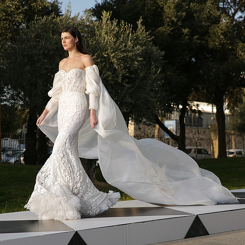 מעצבת שמלות הכלה הבינלאומית מציגה את הקולקציה החדשה שלה, אז תכינו את בגדי האירועים הכי יפים שלכם, וקבלו את החתן - ובעיקר את הכלה, במחיאות כפיים סוערות. במת המסלול נבחרה על ידי האדריכלית איילת שבו במתחם החממה לעיצוב הבית