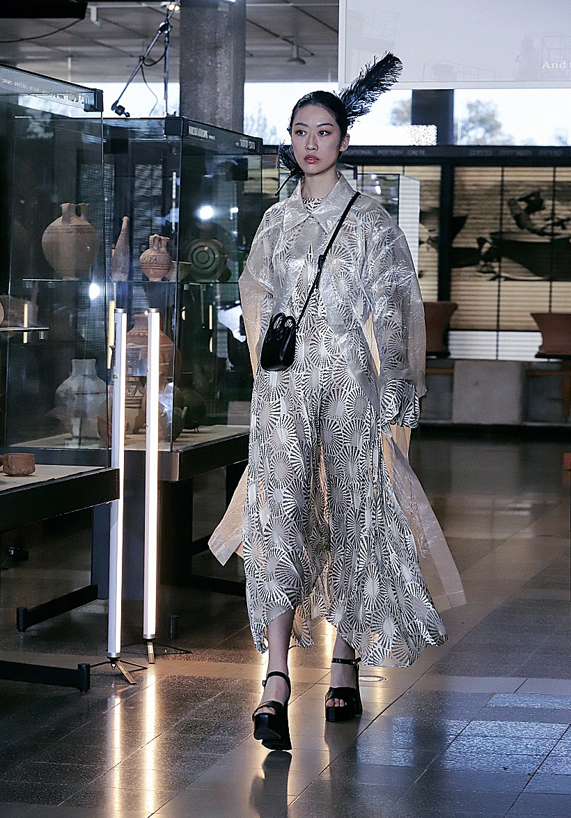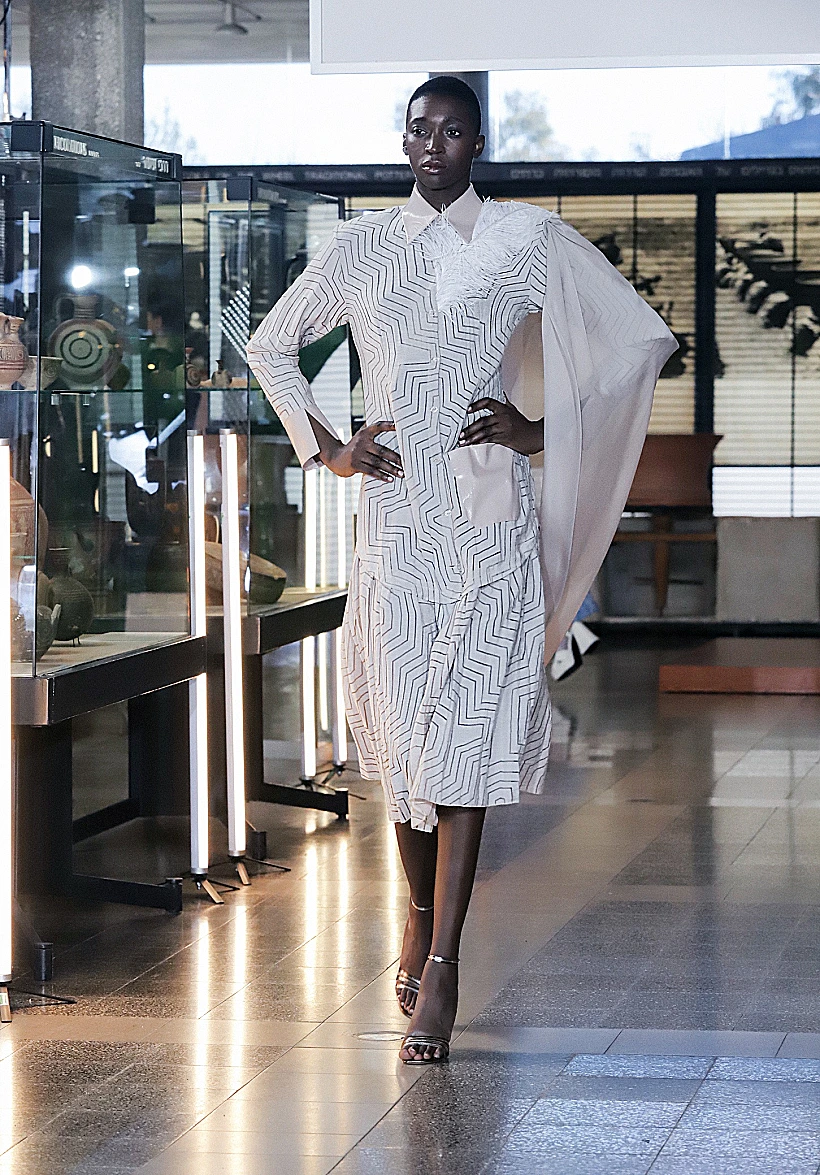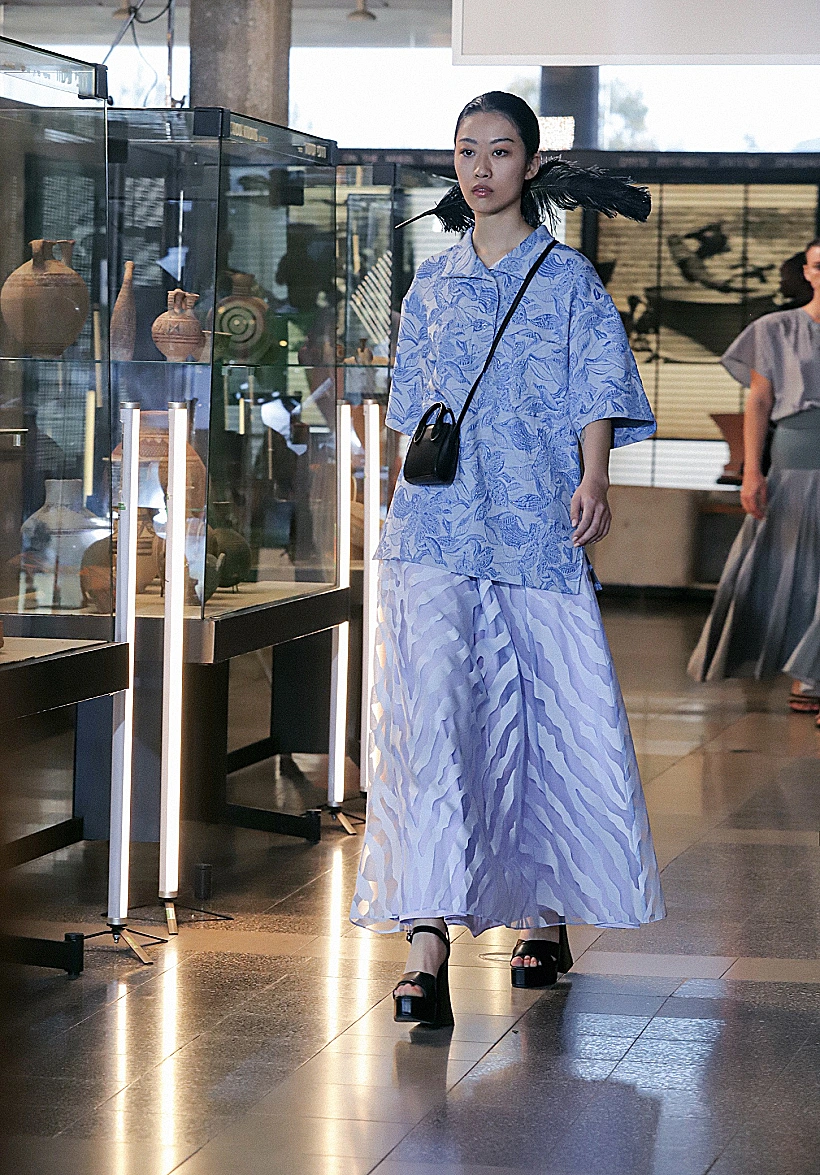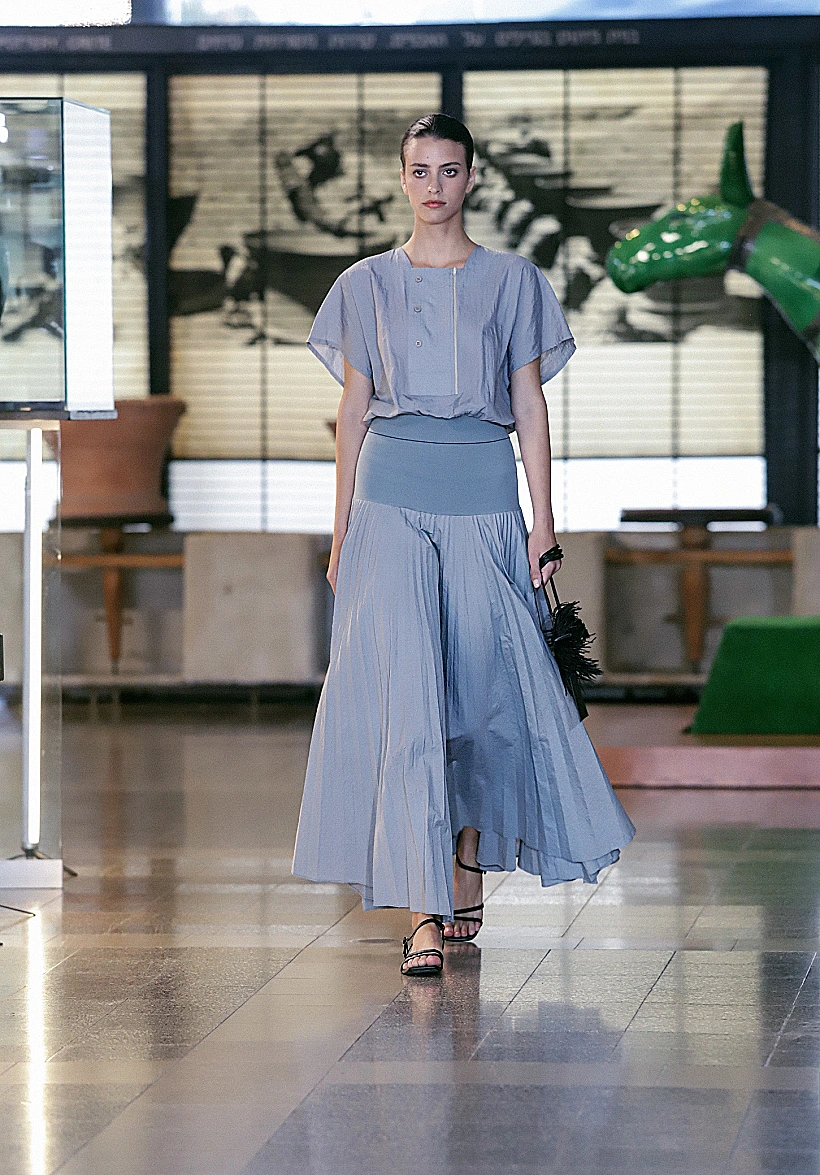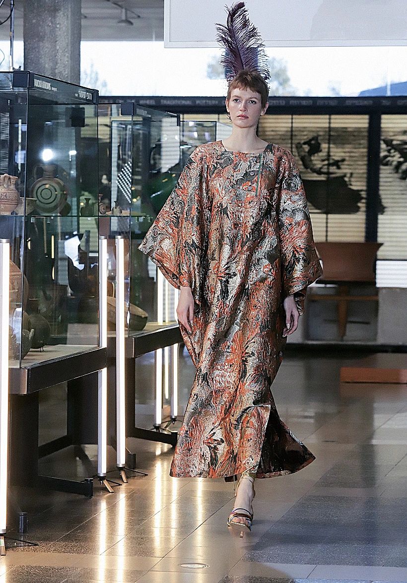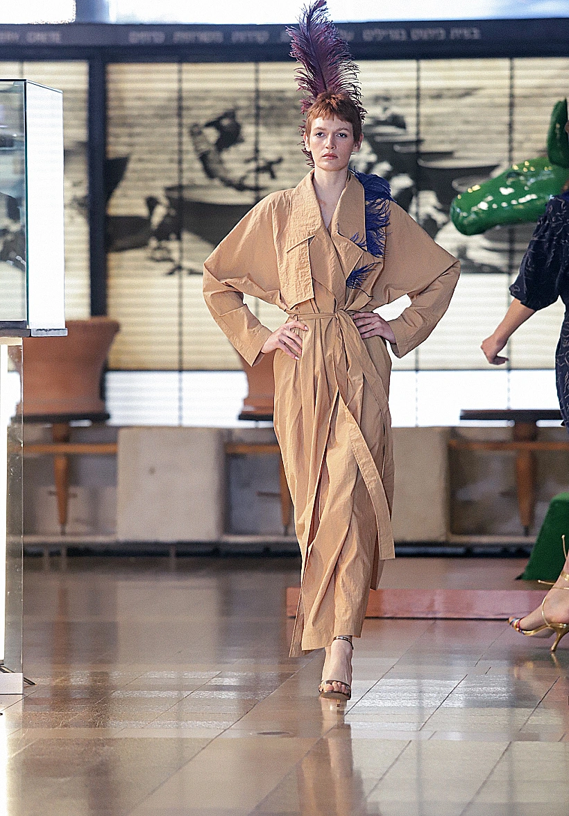במרכז הסיפור של התצוגה של המעצבת חנה בן סימון למותג CB FASHION, עומד סיור במוזיאון עתיקות שהופך להיות מייצג עכשווי הקם לתחייה ומשלב נגיעות תקופתיות מהמאה העשרים בעטיפה עדכנית רווית צבע, פיתוחי הדפסים פרחוניים ושילוב מרקמים מבריקים לצד משי, ברוקארד ותיבול אוורירי של נוצות יען צבעוניות. "הרעיון היה להציג מנעד חי ושופע של גוונים, בעטיפה צנועה אך נוכחת, שמותאמת לכל קהל וגוון בחברה", אמרה לנו המעצבת.