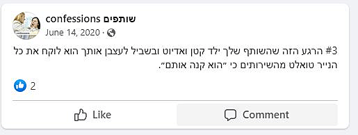 תדמיינו שאתם רבים עם השותף והוא כנקמה מחביא את הנייר טואלט. זה בדיוק מה שקרה למשתתף בקבוצה "שותפים confessions": "הרגע הזה שהשותף שלך ילד קטן ואידיוט ובשביל לעצבן אותך הוא לוקח את כל הנייר טואלט מהשירותים כי 'הוא קנה אותם'".