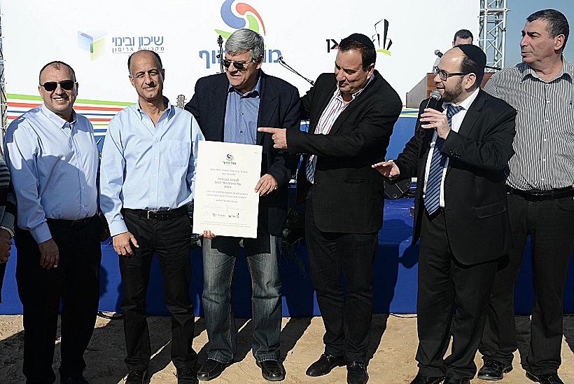 משה לחמני, יו"ר קבוצת שיכון ובינוי, ועודד תורג'מן, יו"ר ובעלים חברת "אמירי גן", השתפו בטקס הנחת אבן פינה ל"מרכז מול החוף"- מגה מתחם החדש אותו הם מקימים בימים אלה בכניסה לחדרה. המתחם יכלול כ- 35,000 מ"ר שטחי מסחר ובילוי, 12 אולמות קולנוע חדישים ו-120,000 מ"ר שטחי משרד בהשקעה כוללת של כחצי מיליארד ₪. במברכים: הפרסומאי נפתלי שפיצר בעלה של ח"כ ציפי לבני ויו"ר משותף המחנה הציוני; תמיר דגן, מנכ"ל שיכון ובינוי נדל"ן; איתן יוחננוף, מבעלי רשת הסופרמרקטים "יוחננוף" שתפעיל סופרמרקט במרכז החדש; צביקה גנדלמן, ראש עיריית חדרה; תמיר דגן, מנכ"ל שיכון ובינוי נדל"ן.