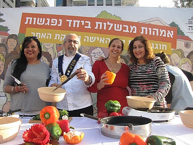 איריס ראור-ברץ מנכ"לית מתחם שרונה, חברי איגוד השפים בישראל ונשות קבוצת "אימהות מבשלות ביחד" נפגשו אתמול על הבמה במתחם שרונה, וחשפו סודות וטיפים מהמטבח ההודי המסורתי. בחוגגות: דורית בלז', נציגת שגרירות הודו בישראל; ליאון מנחם, נשיא איגוד השפים ליאון מנחם וסרנדה מ"מאסטר שף".