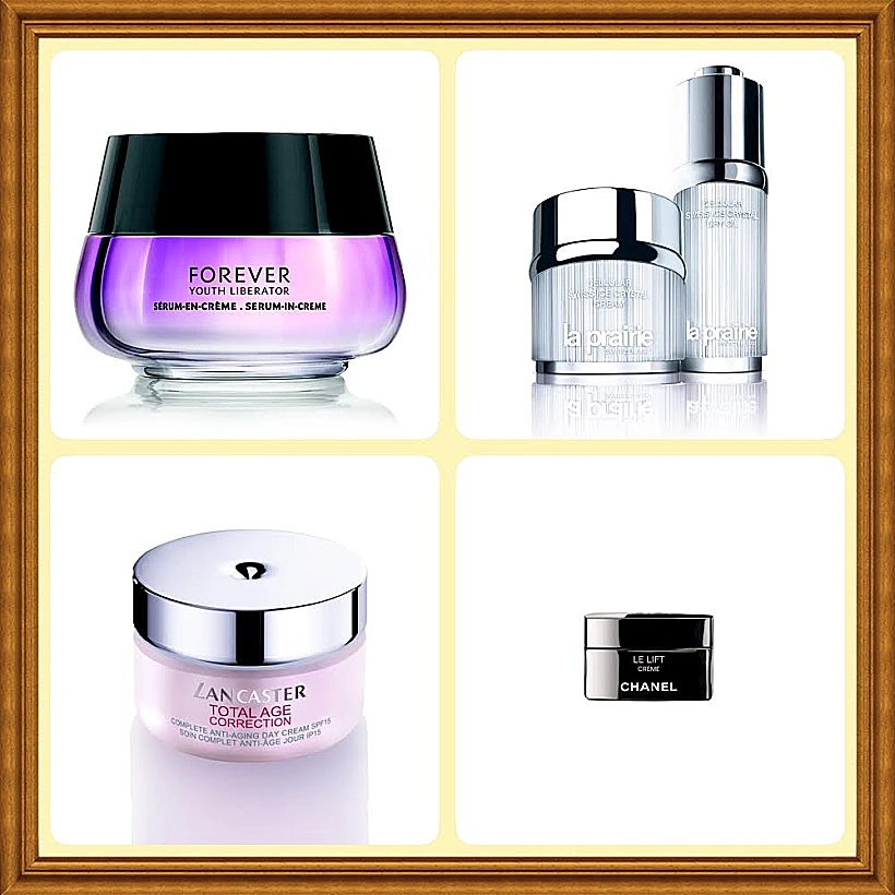la prarie cellular swiss ice crystal cream 1700, סרום בקרם של איב סאן, LE LIFT CREME FINE מבית שאנל מחיר 800 שח ל 50 גרם, Lancaster Total Age Correction PF15 50ml 645