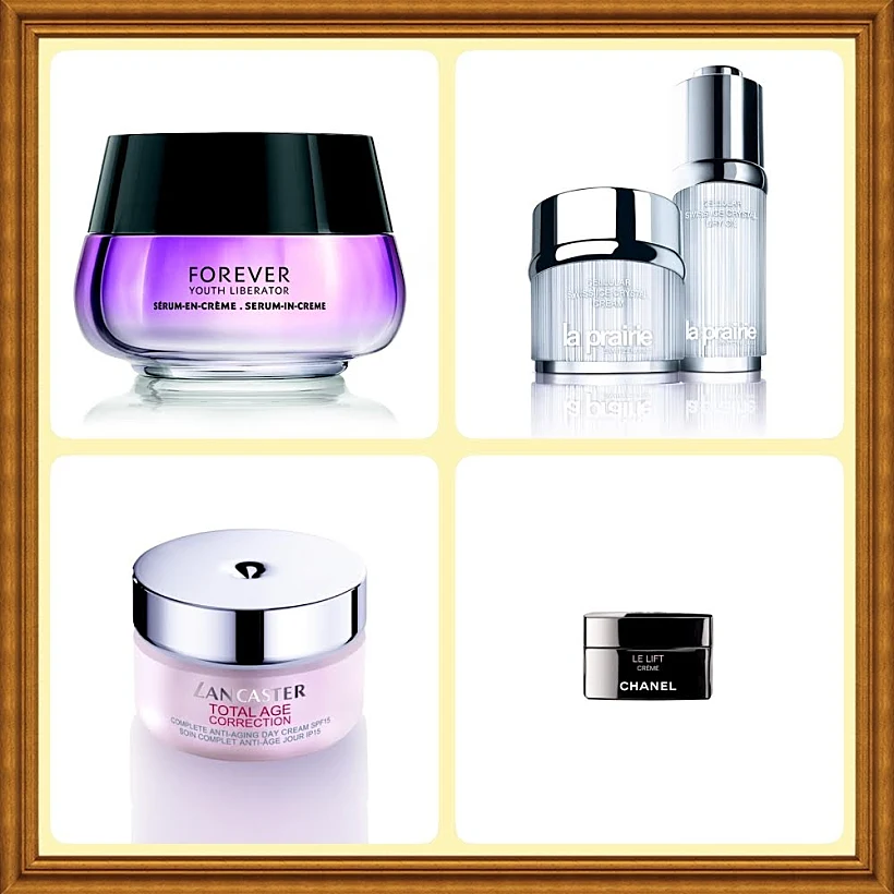 la prarie cellular swiss ice crystal cream 1700, סרום בקרם של איב סאן, LE LIFT CREME FINE מבית שאנל מחיר 800 שח ל 50 גרם, Lancaster Total Age Correction PF15 50ml 645