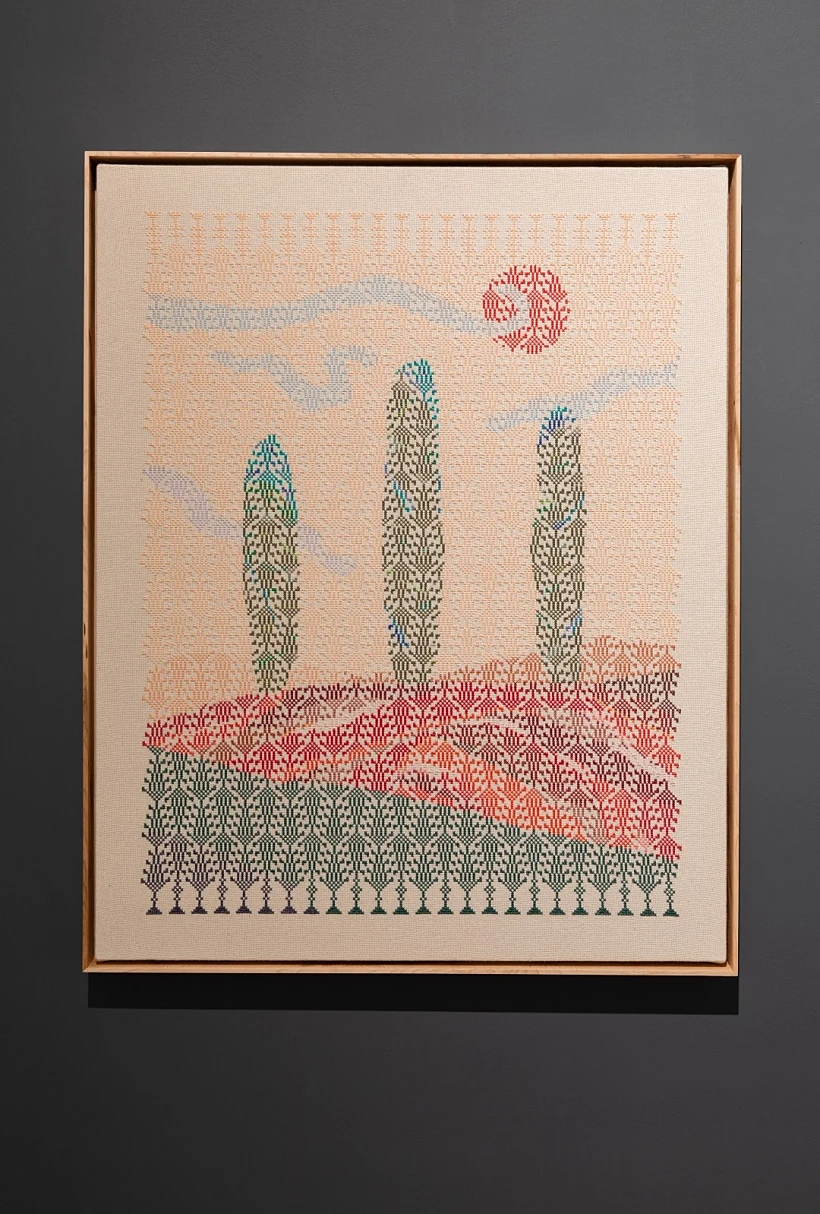העבודה השנייה שמשכה את תשומת ליבנו היתה עבודתו של ג'ורדן נאסר, גם הוא אמן טקסטיל אמריקאי אך ממוצא פלסטינאי. נאסר פיתח מאין שפה חדשה מנובעת מאתניות, ממסורת ומהגעגועים שלו למולדתו. ההתייחסות שלו לקראפט מגיעה ממקום שונה ונראה כי תחת ידיו העובדות, הטקסטיל הופך לסוג חדש של תקשורת גיאומטרית מלאה בסמלים מוסלמים שבאמצעותם הוא בוחן קונפליקטים של זהות, תרבות ומסורת.