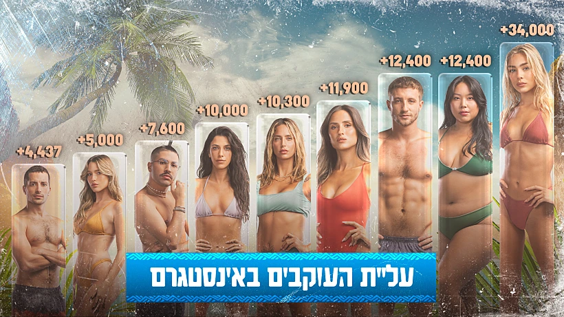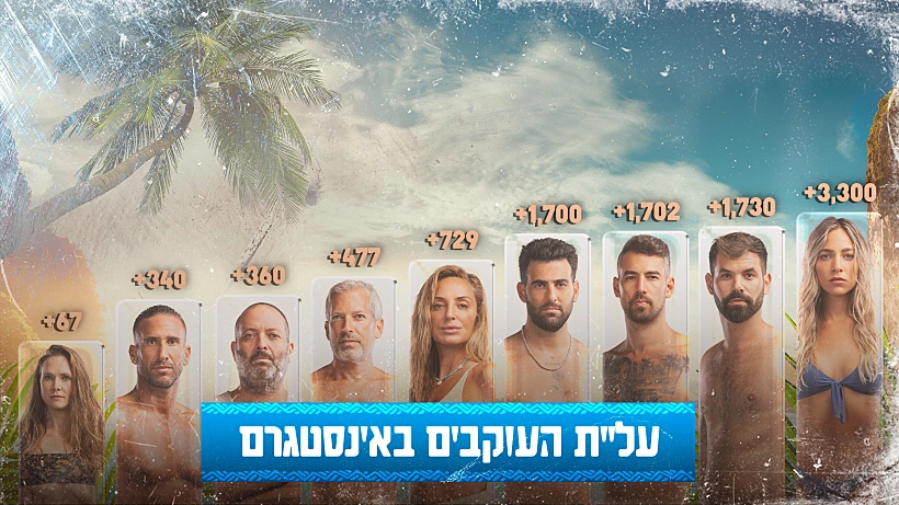 הם נלחמים אחד בשני על אי בודד, בתנאים הכי קשים שיש, אבל כעת מתחיל הקרב האמיתי והחשוב ביותר – זה שקורה באינסטגרם. מעכשיו, ובכל שבוע, נעשה לכם סדר מי נגד מי, למי עלו העוקבים, מי עשה את הקפיצה הכי משמעותית - ומי נשאר ממש אבל ממש מאחור?