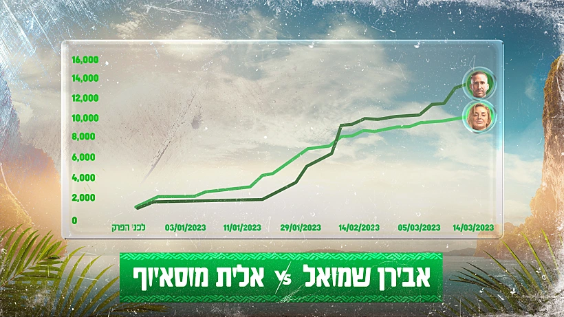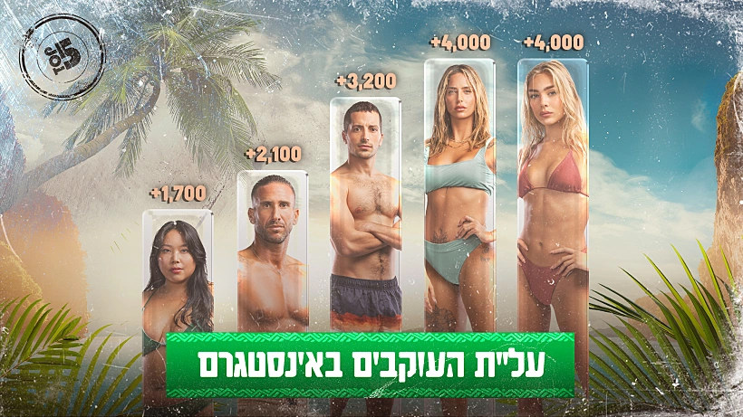 השבוע התייצבו בפסגת ההחלטות אבירן ואלית, שם הם היו צריכים לקבל החלטות גורליות במיוחד. אבל מה קורה איתם בגזרת העוקבים? שימו לב – בתחילת העונה אלית היא זו שהובילה על אבירן במספר העוקבים, אבל כבר בתחילת החודש שעבר, התחולל מהפך, ואבירן פתח פער רציני. היום הוא כבר מוביל על אלית ביותר מ-3,000 עוקבים.