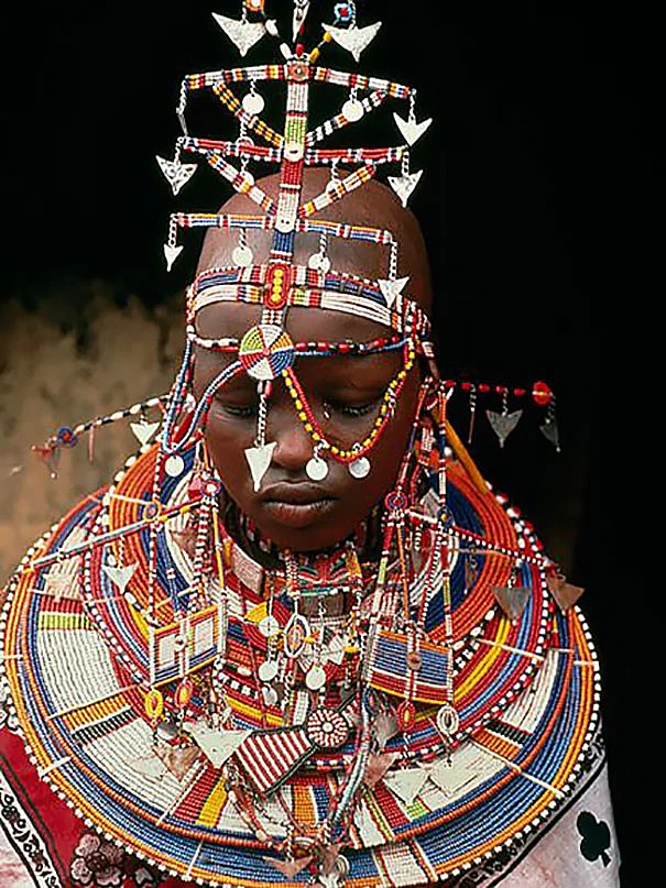 נשים לא נשואות לובשות צווארונים גדולים עשויים בצבעים אדום, ירוק, שחור חרוזים צבעוניים, ונשים נשואות לובשות שתי קולרים עשויים מתכת שונים. סך הכל בגד צנוע, פחות יתאים לכלה הישראלית.