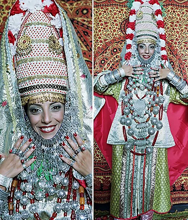 נתחיל עם משהו שאולי חלקנו כבר מכירים, כנהוג בטקס החינה של יהדות תימן, מלבישים את הכלה בבגד צבעוני, תכשיטים ועיטור של פרחים רעננים.