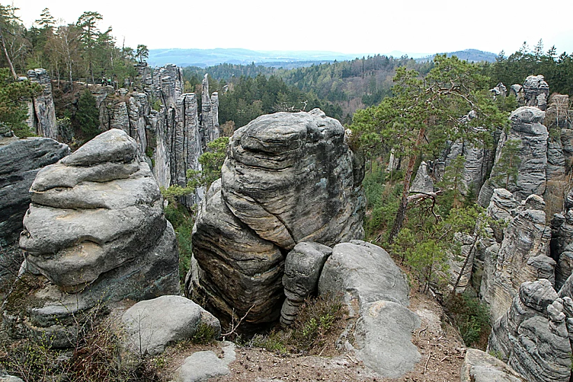 אחד האתרים היפים לטיול בגן העדן הצ'כי הוא צוקי פראחוב (Prachovské skály). המילה Prach בצ'כית היא אבק, על שמו נקראת השמורה שהוכרזה בשנת 1930. השבילים בשמורה מרופדים באדמה אבקתית שנוצרה בגלל הסלעים שנשחקו עם השנים ויוצרים את הנוף הקסום. אורך המסלול בשמורה הינו 3.5 ק"מ (כ-3 שעות) והוא משולט לכל אורכו. השמורה מתאפיינת כמובן בסלעי הענק (שאפשר לטפס עליהם), ולצידם יער, נקיקים, בעלי חיים ולא מעט נקודות תצפית מהם תוכלו לראות את הסלעים המיוחדים. אם אתם מטיילים עם תינוקות יש גם מסלול ייעודי במיוחד בשבילכם שאינו כולל עליות וירידות.