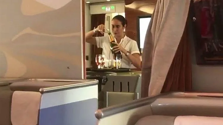 הדיילת הגישה לכם בקבוק משקה? אולי כדאי שתחכו לפני שאתם שותים. דיילת במחלקת העסקים של חברת התעופה "אמירטס" צולמה כאשר היא מחזירה את תכולת כוס השמפניה המשומשת שזה עתה פינתה אל תוך הבקבוק.