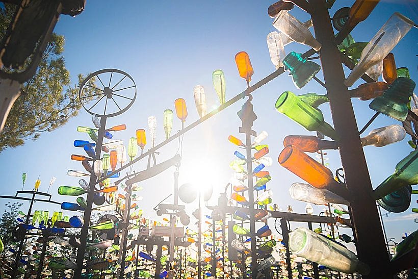 אלמר לונג התחיל לאסוף בקבוקים יחד עם אבא שלו אי שם בשנות ה-50. לפני כ-20 שנה הוא החליט לעשות מהם משהו אחר ומיוחד: אלמר לקח צינורות מתכת גדולים ותלה עליהם בקבוקים, זה צבר תאוצה עד כדי כך שהוא פתח את חוות עצי הבקבוקים ופיזר בה גם פריטי וינטג' יפייפים (כמו מכונות כתיבה ועוד).