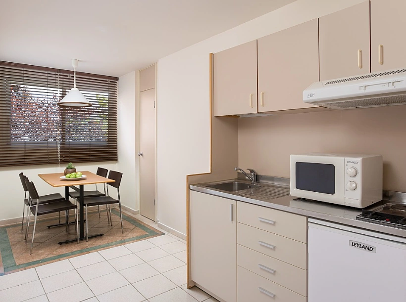 החדרים: במלון יש 96 חדרים וסוויטות בגדלים שונים. מיקומו בסמוך לנוף עוצר נשימה של מכתש רמון. בסוויטה יש שני חדרי שינה, סלון גדול, מטבח ופינת אוכל. מהרגע שנכנסנו מיד הרגשנו בבית. הילדים התמקמו על הספה המזמינה בסלון מול הטלוויזיה ואני הלכתי להכין לי קפה במטבח. משפחות שאוהבות להביא אוכל מהבית ימצאו מטבח מאובזר בפינת קפה\תה מקרר, מיקרו גל, גז חשמלי ואפילו כלים לשימוש. בסוויטה היו שתי טלוויזיות, דבר שפתר מחלוקות צפייה בין הילדים אבל שוב מצאתי את עצמי נטולת זכויות מסך. חדרי השינה מרווחים ומסודרים והמיטות נוחות מאוד, ולראיה - לילדים לקח חמש דקות להירדם עליהן.