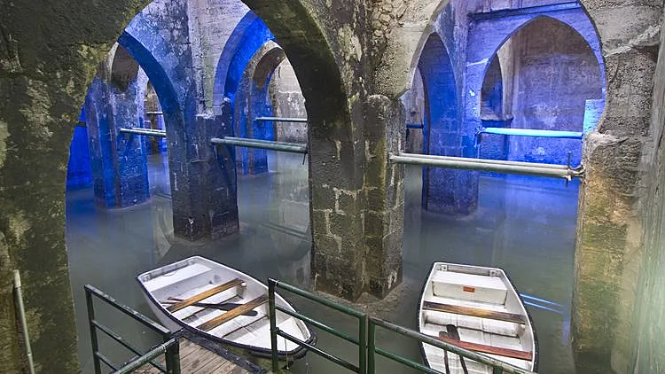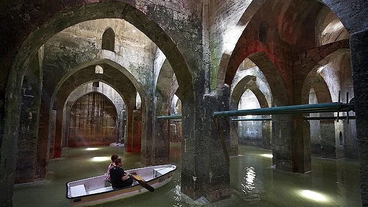 למרות שעברו מעל 1200 שנים מאז נחפרה הבריכה התת קרקעית, היא עדיין שמורה, מפתיעה ומפעימה ביופייה. גודלה כ-400 מ"ר, עומקה 60 ס"מ והיא נתמכת על ידי שלושה טורים וחמש שורות של עמודי אבן שמנמנים. הקשתות הגבוהות מחודדות, נתמכות על העמודים, מחפות על הבריכה, ויוצרות מראה ארכיטקטוני מרשים, גם הודות לאשנבים בתקרה דרכם, כנראה, שאבו את המים עם דליים.