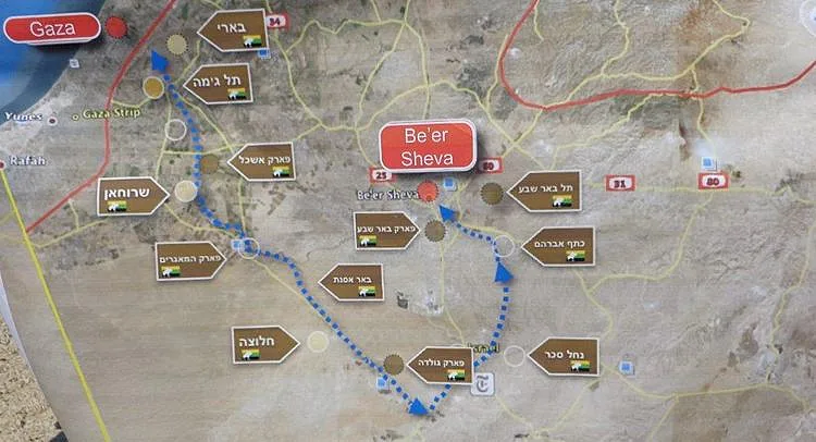 לכבוד ציון ה-100 הדרמנו לנגב כדי להשיק עם קק"ל את נתיב האנז"ק הרשמי – 100 ק"מ שמובילים בעקבות האיגוף הגדול שעשו החיילים בימי מלחמת העולם הראשונה כדי לשחרר את העיר. הפעם ויתרנו על הסוס ונסענו בדרך הנגישה והעבירה לכל הרכבים. הדרך הרשמית היא נופית, מסומנת, משולטת, מוסברת, וכוללת, נכון לעכשיו, 10 תחנות מעניינות בהן אתרי היסטוריה ומורשת, מאגרי מים, אגם (יבש), נחלים (שמחכים לשיטפונות), יערות, פארקים, מצפורים, מצפים, גשרים, מסלולי אופניים, מתקני שעשועים וחניוני פיקניק. בשלוש נקודות מרכזיות – בביתרונות בארי, בפארק גולדה ובפארק אשכול מוקמים מבואות מידע, תצפית ונוף שכל אחת מהן תרכז בנושא ייחודי לה. במסע הפעם עצרנו בחמש נקודות אסטרטגיות שהפכו לאתרי תיירות אטרקטיביים, שגם הילדים ייהנו בהם מאוד.