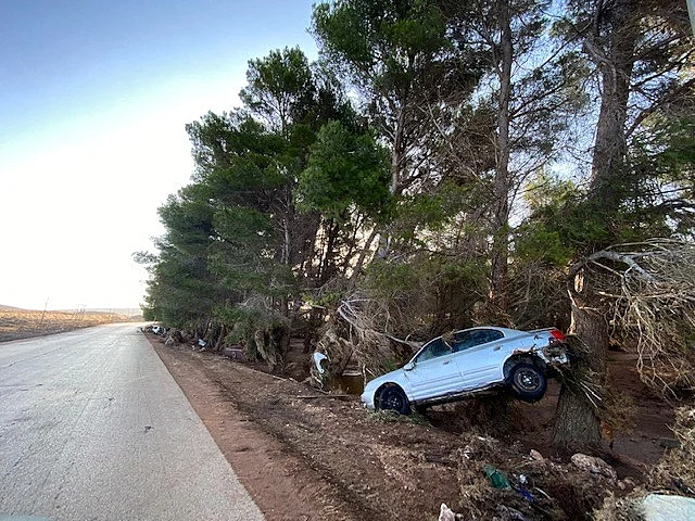 גשמים אדירים במדינה הצפון-אפריקנית בעקבות הסופה "דניאל" הביאו לשיטפונות עזים בערים באזור צפון-מזרח המדינה. שני סכרים ו-3 גשרים לפחות קרסו, ערים טבעו תחת המים ונזק כבד נגרם. מאמצי הסיוע עשויים להיפגע בשל מאבקים פוליטיים בין שלטונות מזרח ומערב המדינה. "לא התמודדנו עם מצב קטסטרופלי כזה מעולם"