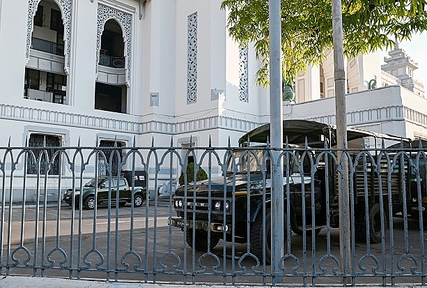 רכב צבאי בבניין העירייה ביאנגון, במהלך ההפיכה הצבאית במיאנמר | צילום: רויטרס