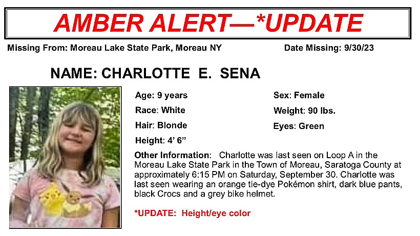 שרלוט סינה, ילדה בת 9 שעלתה לכותרות לאחר שנעלמה בעת שרכבה על אופניים עם חבריה באתר קמפינג באגם מורו שבמדינת ניו יורק, נמצאה היום (שלישי) כשהיא בריאה ושלמה, בביתו של גבר בן 47. החשוד, קרייג נלסון רוס ג'וניור, ניסה לסחוט את המשפחה וזוהה לאחר שהמשטרה איתרה טביעת אצבע על מכתב כופר שנמסר למשפחה.