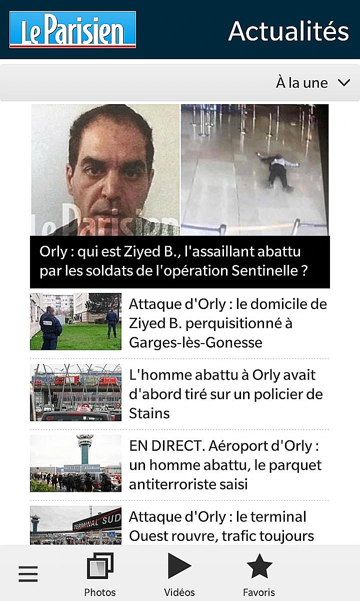 אזרח צרפתי מוסלמי נהרג היום (שבת) לאחר שירה בשוטר בפריז וניסה לחטוף נשק מחיילת בנמל התעופה באורלי. שמו של התוקף, על פי "לה פריזייאן" הצרפתי, הוא זיעד ב'.