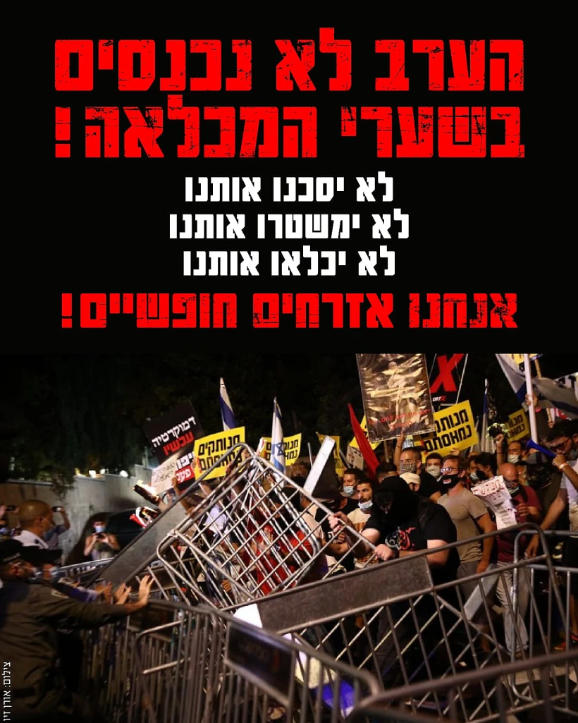 "בהמשך הערב יתייצבו אלפיי מפגינים מכל קבוצות המחאה מחוץ לשעריי הכניסות הלא חוקיים שהציבה המשטרה סביב כיכר פריז במחאה על התעקשות המשטרה לתחום ולמעשה לכלוא באופן מסוכן וחסר תקדים את עשרות אלפיי המפגינים", מסרו מוקדם יותר.