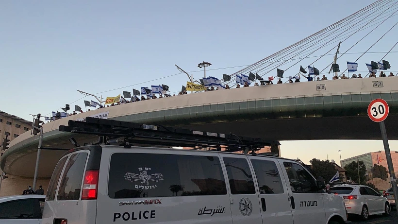 מפגיני הדגלים השחורים על גשר המיתרים | צילום: חדשות 13