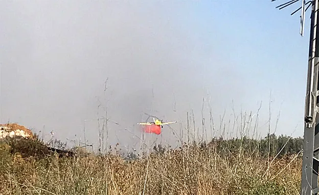 6 מטוסי כיבוי הוזעקו ליישוב משמר איילון שליד לטרון בעקבות שריפת קוצים גדולה. תושבים המתגוררים בקו הבתים הראשון ביישוב פונו מבתיהם