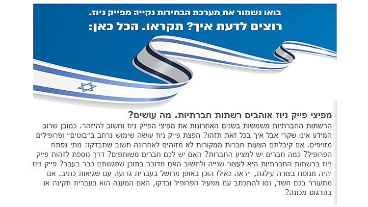אך בעוד שעיקר מאמצי ההסברה הישראלים בבחירות 2019 הופנו למאבק בהתערבות גורמים חיצוניים -נראה כי ההתערבות המשמעותית באופן גורף מקורה מבית. בדיקה שערכנו במשך השבועות האחרונים מצאה כי מתחת לרדאר הוקמו להם עשרות , אם לא מאות עמודי חדשות שמקורם אינו ידוע במקרה הטוב ומפוקפק מאוד במקרים הגרועים יותר. העמודים הללו ניצלו את השימוש בשם "חדשות" ובהגרתם במערכת של פייסבוק כ"עמוד חדשות" לצורך גניבת דעת הקהל למטרות שונות – ובחלק מהמקרים ככלי שרת בידי פעילי מפלגת הליכוד.