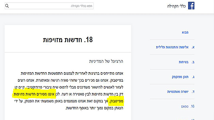 בעקבות המעורבות הרוסית בבחירות לנשיאות ארה"ב, זו שבעטיה הופצו אינספור סיפורים שיקריים אודות מועמדת המפלגה הדמוקטית, הילארי קלינטון, הרי שבפייסבוק הכריזו על מלחמה בפייק ניוז - מלחמה שהסתיימה די מהר בכניעה כמעט מוחלטת של פייסבוק. למרות הצהרות רישמיות שבכיריה מפזרים לכל עבר, הרי שהתקנון הרשימי של החברה חושף את האמת המרה - פייסבוק כלל לא מסירה חדשות מזוייפות: