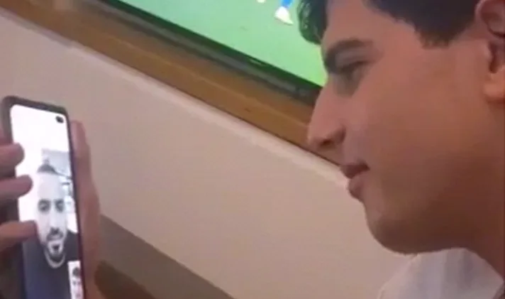ישי שטרית, הנער שהותקף אמש על ידי חבורת נערים ששברו את לסתו ואת ושיניו, משוחח בשיחת וידאו עם מאור אדרי