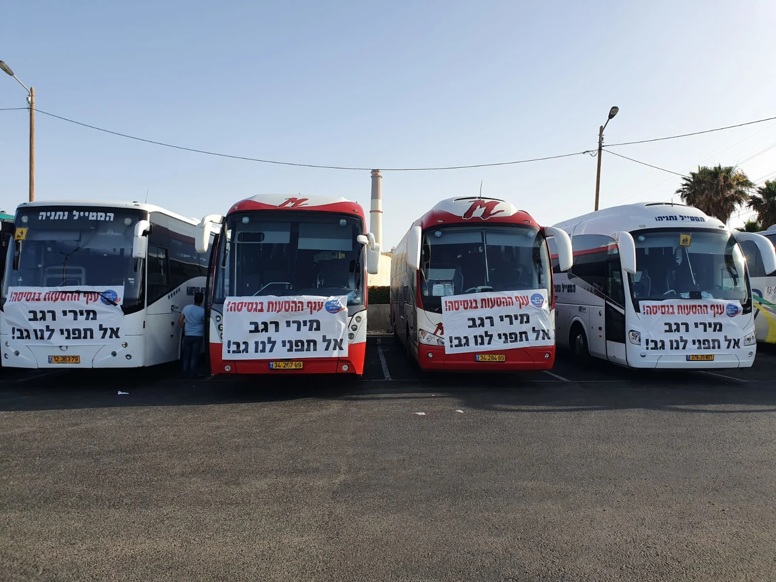 עשרות אוטובוסים חסמו לזמן קצר את כביש 20 לכיוון דרום, כשהם נושאים שלטים עם הכיתוב "מירי רגב אל תפני לנו את הגב". זאת, לטענת מארגני ההפגנה, בשל התעלמות ממשלת ישראל מקריסת הענף