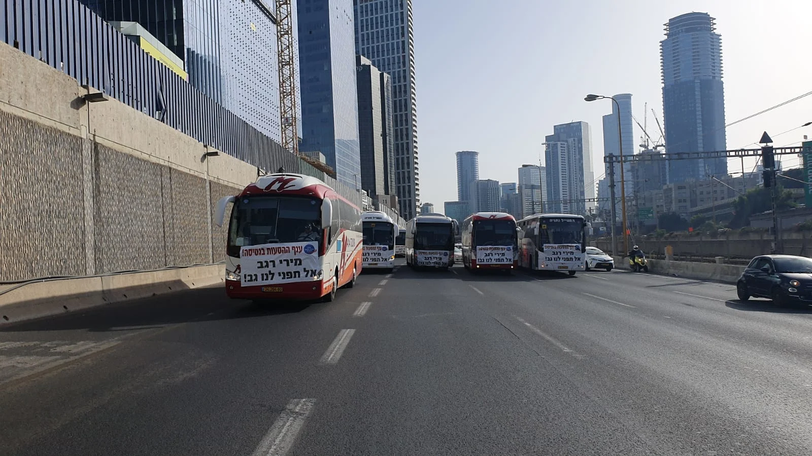 מחאת ענף ההסעות הפרטיות: נהגי אוטובוס חסמו את נתיבי איילון