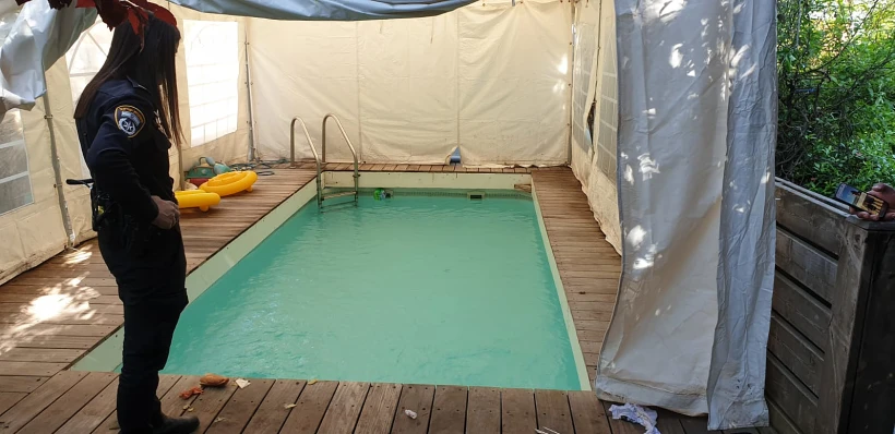 הבריכה בצימר בה טבע הפעוט בן השנתיים | צילום: דוברות המשטרה