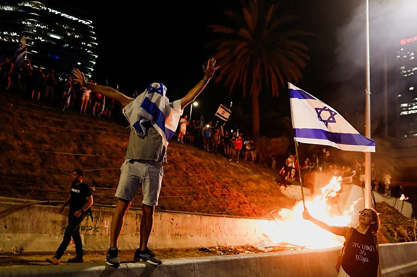 החקיקה - והמחאה: לאחר שבכנסת אושר היום (שני) החוק לביטול עילת הסבירות בקריאה שנייה ושלישית, המחאה המשיכה בכל העת מחוץ לכנסת, בתל אביב ובמוקדים נוספים ברחבי הארץ. בכביש 531, סמוך לכפר סבא, נדרסו שלושה מפגינים שנפצעו באורח קל ופונו לבית החולים מאיר, המשטרה עצרה חשוד בדריסה. בקיבוץ חצרים עימות בין מפגינים בעד הרפורמה שחסמו את הכניסה לקיבוץ הוביל לירי באוויר שבוצע על ידי קב"ט הקיבוץ. בנתיבי איילון חסמו המפגינים את הכביש, שנפתח מחדש לתנועה רק אחרי שהשוטרים השתמשו במכת"זיות נגד המוחים.