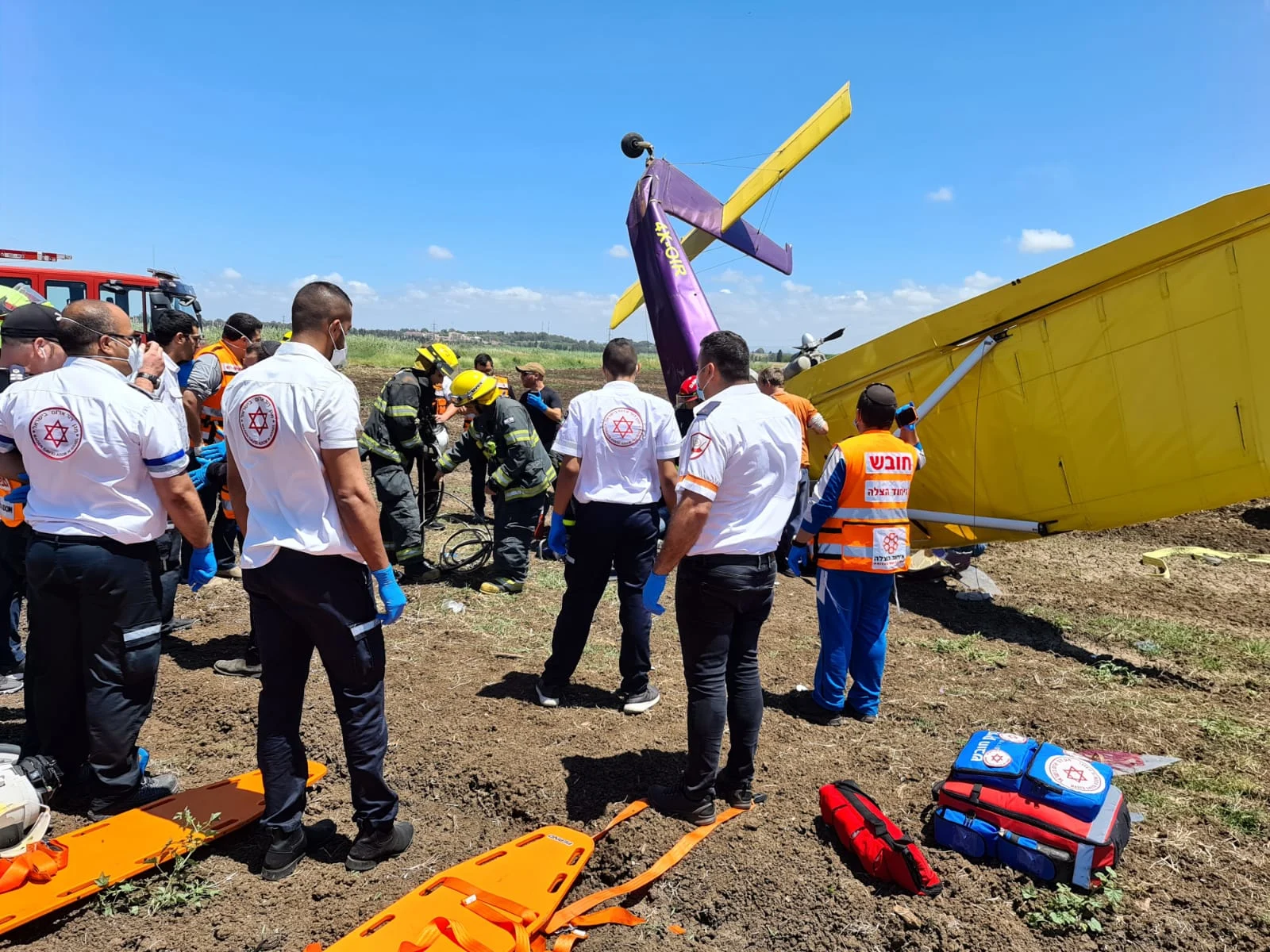 פרמדיקים של מד"א ירדן דהרי ועידן סיפרו: "כשהגענו למקום ראינו את המטוס הקל שהתרסק בשטח הפתוח ובתוכו נלכדו 2 פצועים, גבר כבן 50 שהיה מחוסר הכרה ונער כבן 14 בהכרה מלאה. מיד התחלנו בטיפול רפואי כשבמקביל פעלו לוחמי האש לחלץ את הפצועים. הגבר היה ללא סימני חיים ובתוך זמן קצר נאלצנו לקבוע את מותו. הנער שנפגע באורח קשה הועבר למסוק צבאי שנחת במקום ופונה לבית החולים תוך כדי טיפול רפואי מציל חיים".