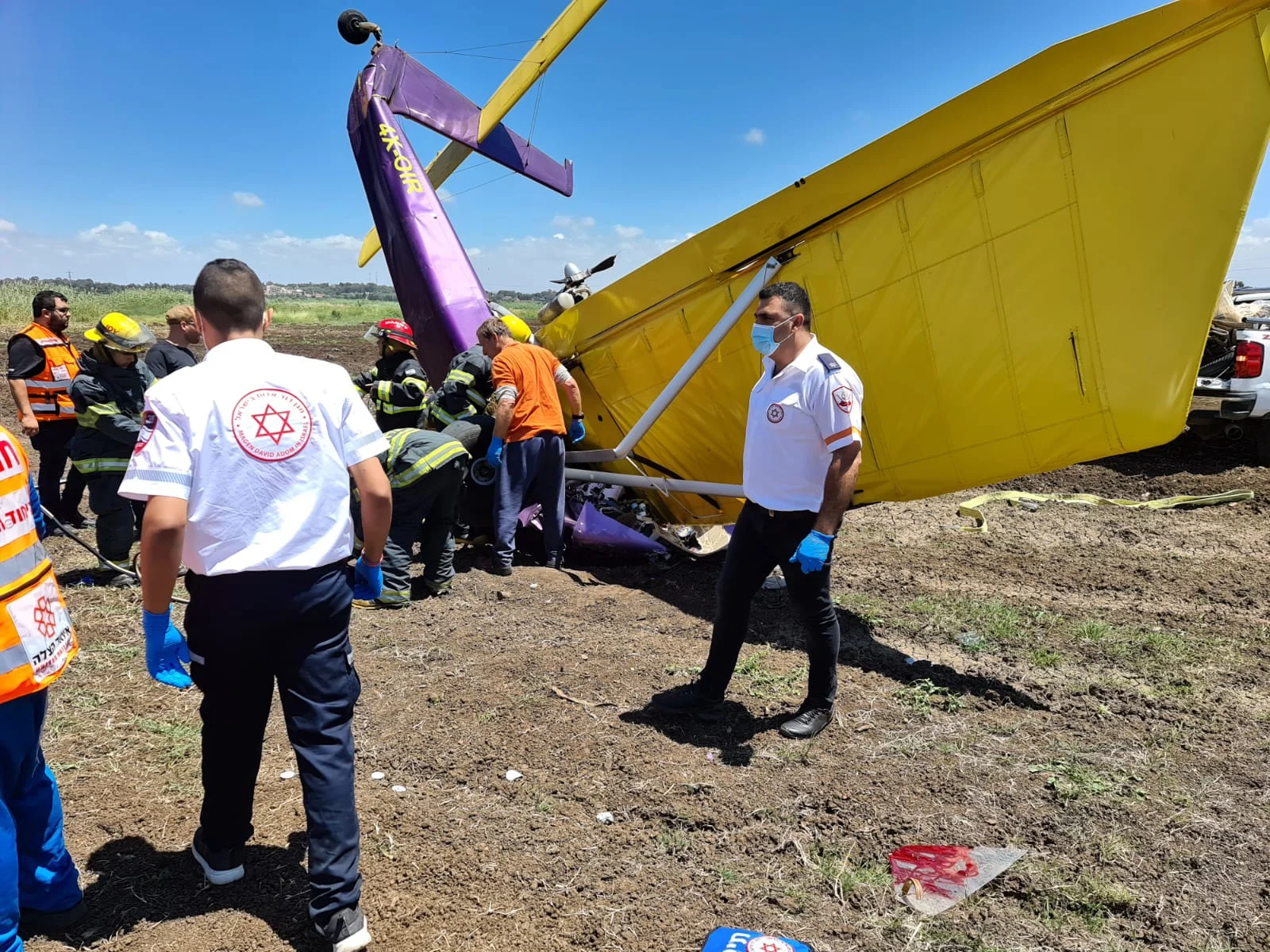 מטוס קל התרסק בשטח פתוח בשרון: אב נהרג, בנו הנער נפצע קשה