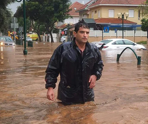 ראש עיריית הוד השרון, אמיר כוכבי, בהצפה בעיר | צילום: חדשות 13