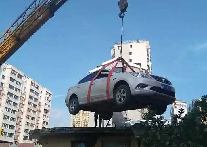 לקול תשואות הדיירים שמיהרו למקום על מנת לתעד את האירוע המשעשע המנוף הרים את המכונית מחוץ להישג ידיה של הנהגת - על גג עמדת השמירה של הקומפלקס.