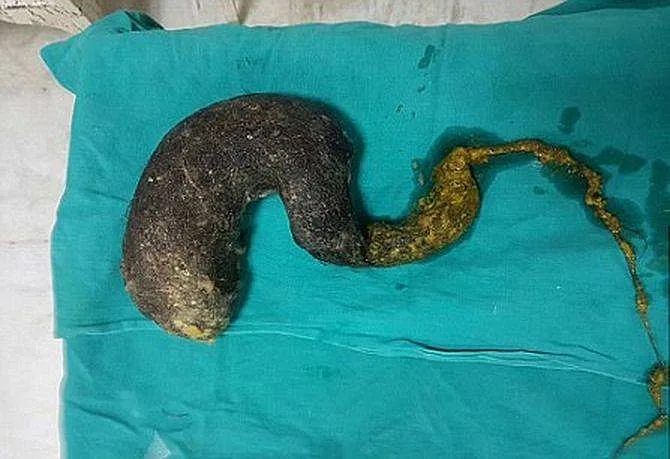 כשהנערה הגיעה לביה"ח בעיר דיהרדון שבהודו, היא עברה צילום רנטגן בו נמצא לתדהמתם של הרופאים גוש שיער בגודל כ-80%(!) מקיבתה.