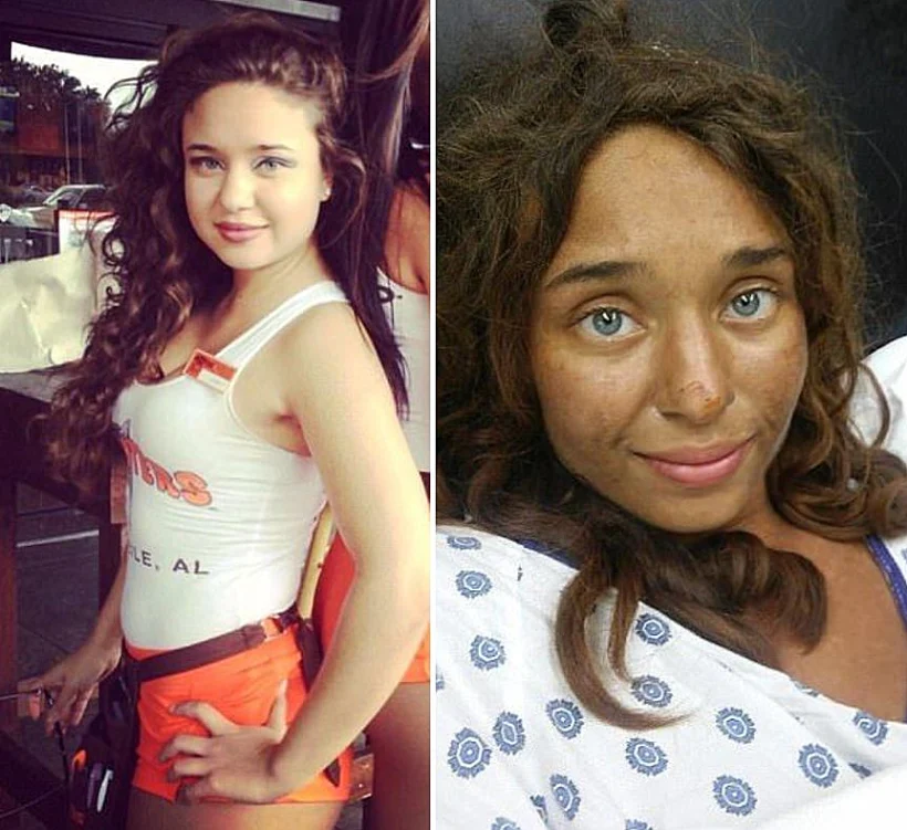 ליסה ת'אריס - לפני שנעדרה (משמאל) ואחרי שנמצאה (מימין)