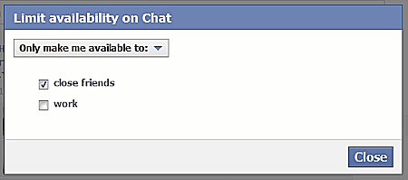 2. בחלון החדש יופיעו לפניכם שתי אפשרויות. הראשונה, Make me unaveilable to, מאפשרת לבחור לאיזו קבוצת חברים אינכם רוצים להראות (למשל, אם אתם בעבודה ולא רוצים שהבוס יראה אתכם בצ'ט). השניה, Only make me available to, מאפשרת לבחור רק את הקבוצות שאתם רוצים להיות זמינים לשיחה איתם (למשל, המשפחה).