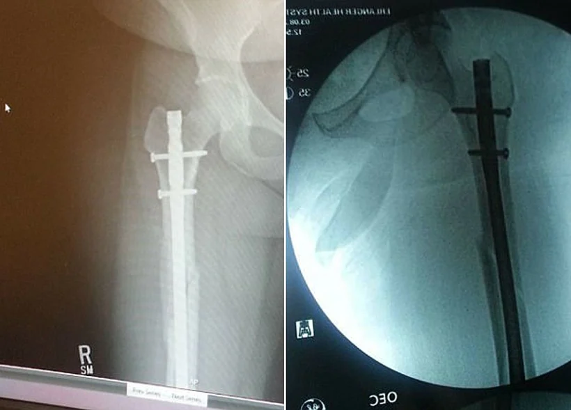 התוצאה: 4 שברים חמורים בעצם הירך, ריסוק הקרסול ואף שבור.