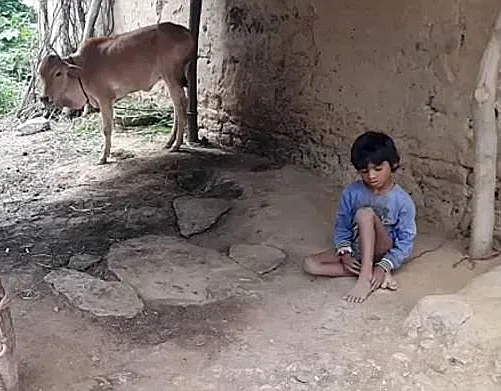 שני הילדים אינם קשורים אחד לשני ומתגוררים במקומות שונים במדינת ראג'סטן בתת היבשת ההודית. אומש בן ה-8 סובל מפיגור שכלי ולקות ראיה, הוריו מתו מאיידס לפני 5 שנים והוא הועבר לחזקת סבו וסבתו. סבתו בת ה-75 טוענת כי אומש אלים ונוהג לברוח מהבית כאשר הוא יכול, ולכן הם קשרו אותו למקל במבוק ברפת, יחד עם הפרות. "אומש היה ילד רגיל עד שהיה בן שלוש אבל לאחר מות הוריו החל להתנהג אחרת", אמרה סבתו לתקשורת המקומית.