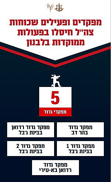 מדובר צה"ל נמסר כי במהלך הפעילות במרחב איתרו הכוחות בבית מגורים תחמושת משגרי טילים, טילי נ״ט ורקטות לצד מיטה ותמונה של מנהיג חיזבאללה שחוסל, חסן נסראללה. בנוסף אותרו עשרות אמצעי לחימה שהושארו מאחור במבנים ובבתים אזרחיים במרחב דרום לבנון, וביניהם: משגרי טילים שכוונו לשטח הארץ, טילי נ״ט, נשקים, עמדות תצפית ומטען חבלה שהאויב הטמין במסווה בשטח.