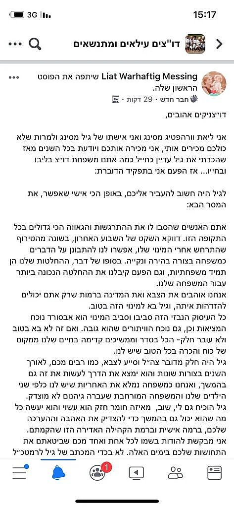 אישתו של מסינג, ליאת וורהפטיג, פרסמה הודעה בקבוצת פייסבוק של חיילי דובר צה"ל ובה ציינה כי היא מעבירה את ההודעה בשמו של בעלה: "לגיל היה חשוב להעביר, באופן הכי אישי שאפשר, אז אני בתפקיד הדוברת". בהודעה כתבה בין היתר כי "כל העיסוק הנבזי סביבו הוא אבסורד נוכח המציאות וכן, נוכח הוויתורים שהוא גבה. אם זה לא בא בטוב, הכל בסדר וממשיכים קדימה בחיים שלנו".