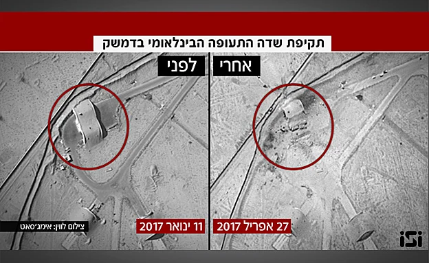 בצילומים שמגיעים מלוויין ביון ישראלי ניתן לראות את ההרס הרב שנגרם בהפצצת ההאנגר בדמשק לפני שבוע. מהתמונות אף ניתן ללמוד כי מי שביצע את התקיפה הסתמך על מידע מודיעיני מדויק