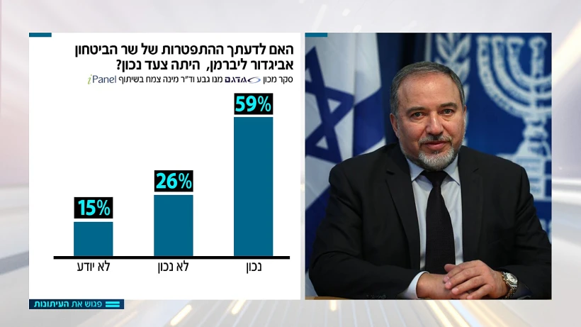 מיד אחרי מפלגת השלטון: יש עתיד של יאיר לפיד עם 18, המחנה הציוני בראשותו של אבי גבאי עם 12. 59% מהציבור: ״התפטרות ליברמן - צעד נכון״